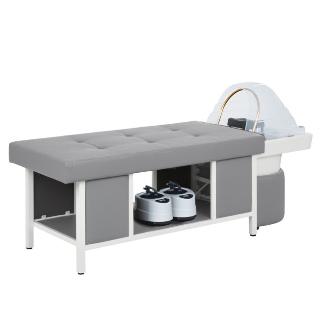 Наоми — спа-кушетка для процедуры head spa, которая превращает обычный уход за волосами в настоящее SPA-путешествие. Продуманная эргономика обеспечивает максимальный комфорт во время процедур, а мягкое ложе поддерживает тело клиента, позволяя полностью расслабиться. Аква-дуга равномерно распределяет потоки воды, создавая эффект глубокого массажа кожи головы и усиливая действие косметических средств.
