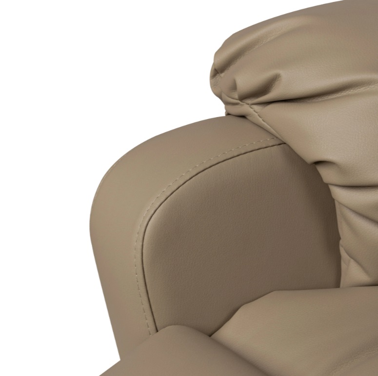 Мягкая обивка из влагостойкой качественной экокожи отлично переносит регулярную чистку и дезинфекцию. Наполнитель сидения – поролон повышенной эластичности, наполнители для подлокотников и спинки - периотек и синтепух. Материал быстро восстанавливает свою структуру и не позволяет мягким элементам деформироваться, сохраняя пышность на долгие годы.