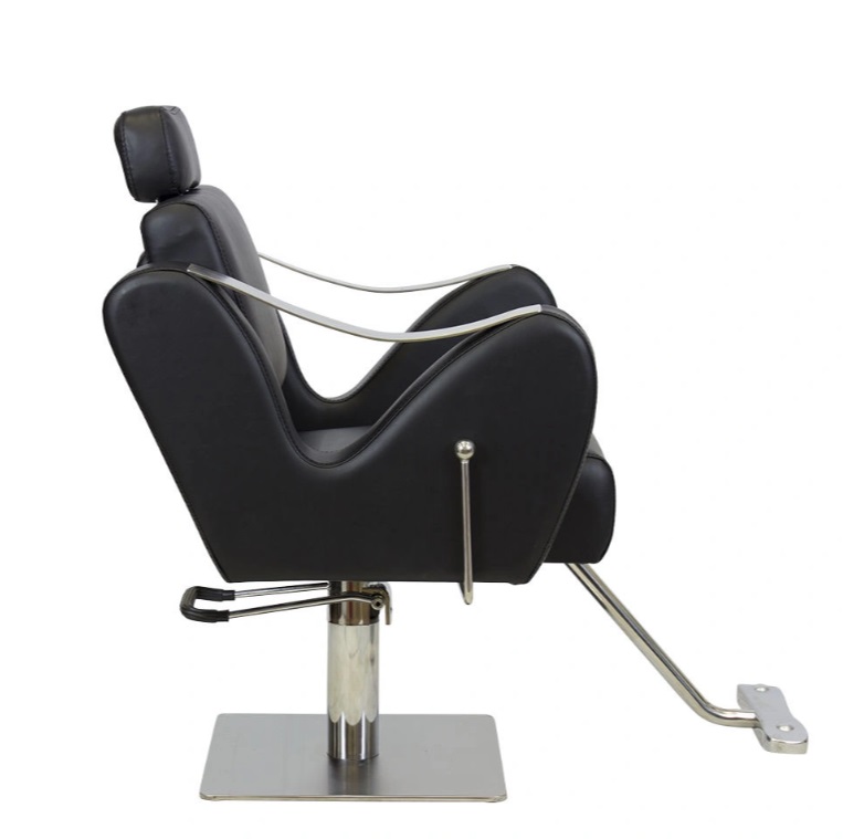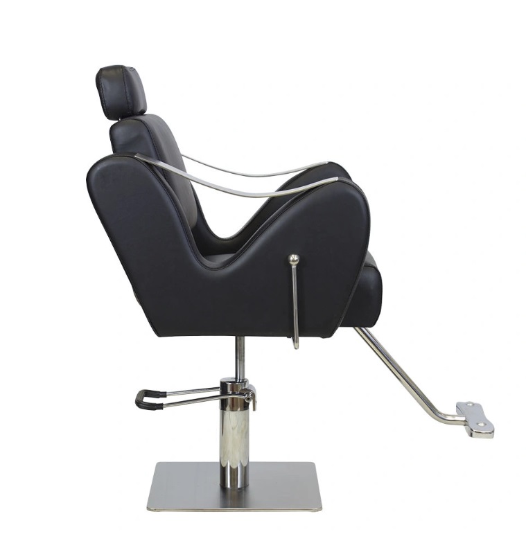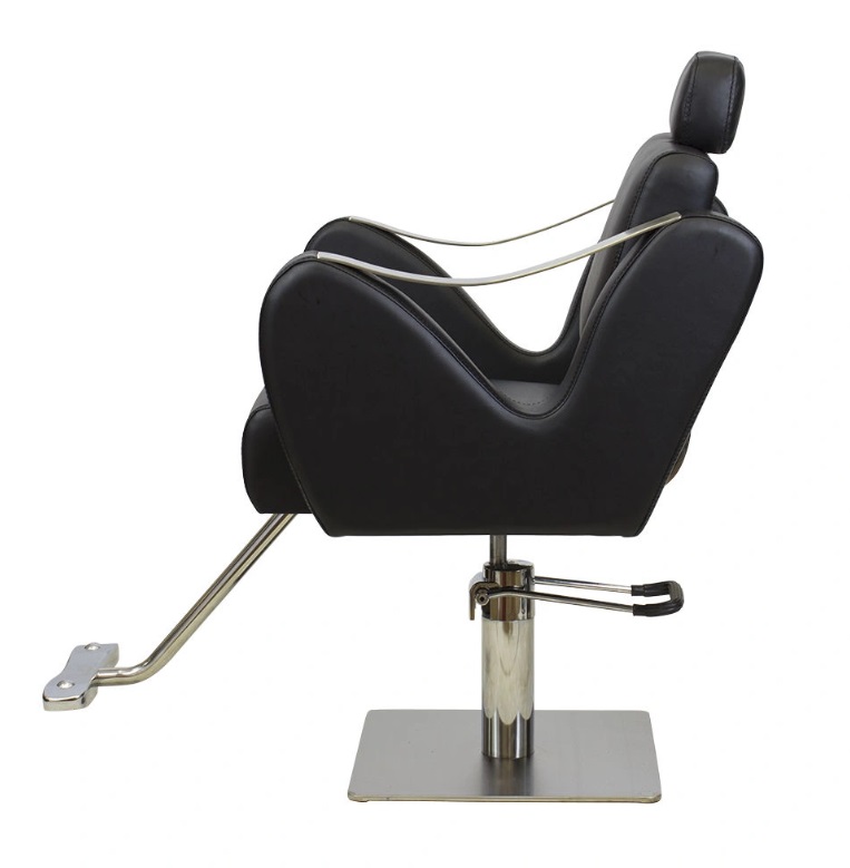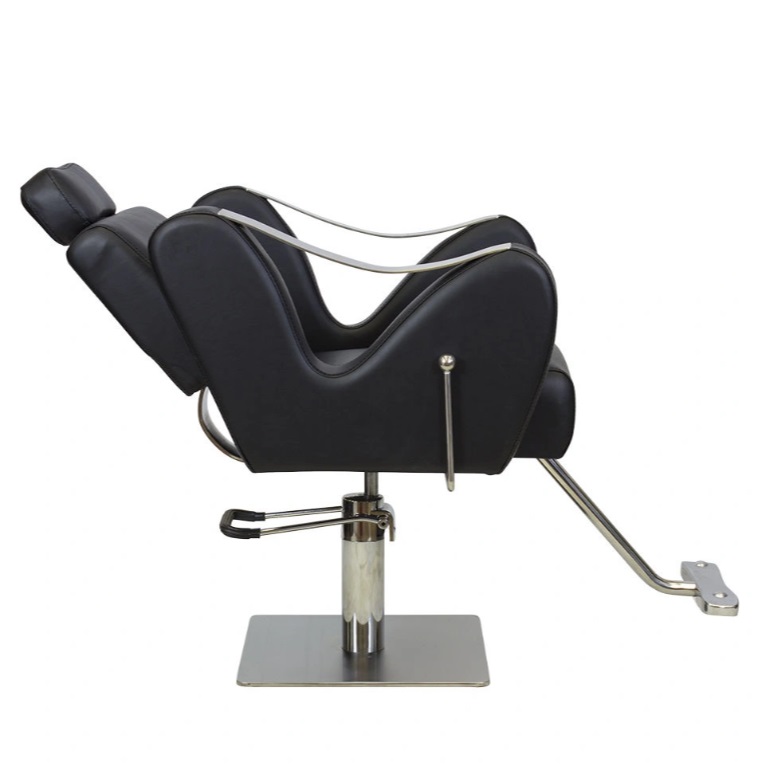 Спинка парикмахерского кресла откидывается, чтобы посетитель мог принять полулежащее положение. Подлокотники выполнены в необычной изогнутой форме и дополнены стильными накладками из стали. Выдвижной подголовник поддержит голову и шею клиента. Подножка из высокопрочного металла – ещё одно практичное дополнение. Она предупредит переутомление ног в течение длительных процедур.