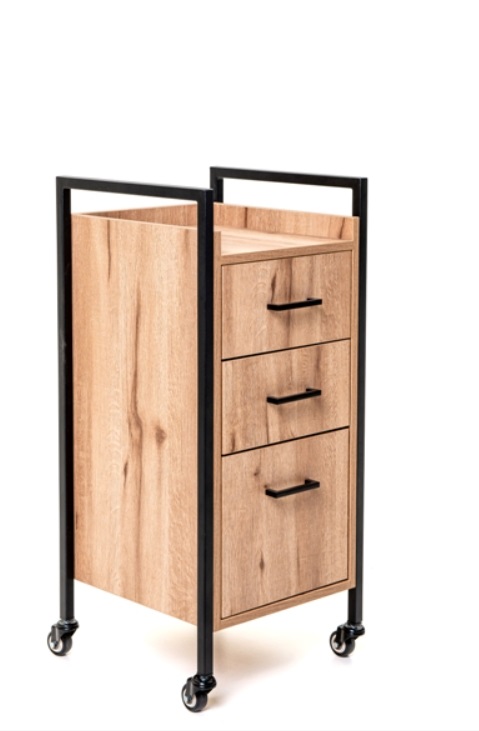 Тележка ТЭКТУМ 3 — это модель тележки из коллекции ТЭКТУМ, предназначенная для удобного хранения инструментов и аксессуаров парикмахера. Она оснащена тремя просторными выдвижными ящиками, которые помогут поддерживать порядок в рабочем пространстве. Каркас тележки выполнен из металла с порошковым покрытием, что обеспечивает долговечность и стойкость к повреждениям. Корпус и ящики изготовлены из ЛДСП, что придает тележке современный и стильный вид. Особенности модели — это качественные шариковые направляющие с полным выдвижением для каждого ящика, что значительно облегчает доступ к необходимым аксессуарам. Также тележка оснащена бесшумными колесными опорами, обеспечивающими отличную маневренность и легкость в передвижении по салону. Эргономичные рукоятки добавляют комфорта при перемещении тележки. В отличие от более бюджетных моделей, тележка ТЭКТУМ 3 отличается высоким качеством материалов и продуманной конструкцией, что делает ее надежным помощником в процессе работы. Тележка ТЭКТУМ 3 — идеальное решение для профессионалов, ценящих удобство, качество и стиль.