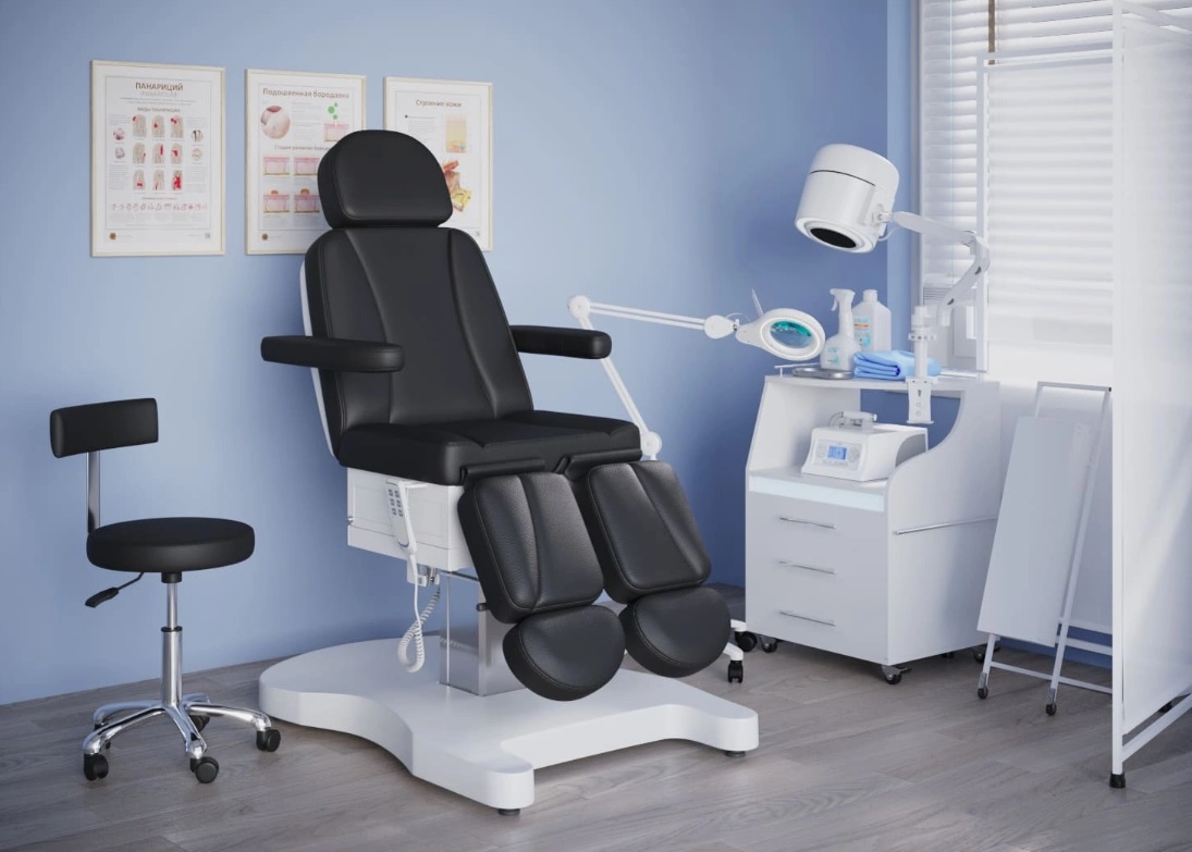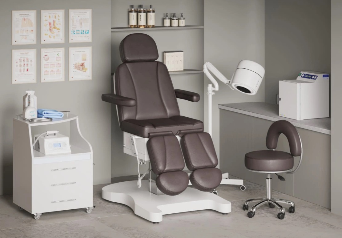 Педикюрное кресло Мэйджик Подо, 3 мотора гармонично сочетает в себе инновационные технологии, современный дизайн и хороший функционал. Высота, положение спинки и изменение угла наклона кресла регулируются с помощью трёх электромоторов с пульта управления, ножки – с помощью пневматики, все это позволяет быстро и с комфортом для клиента менять положение мягких элементов.
