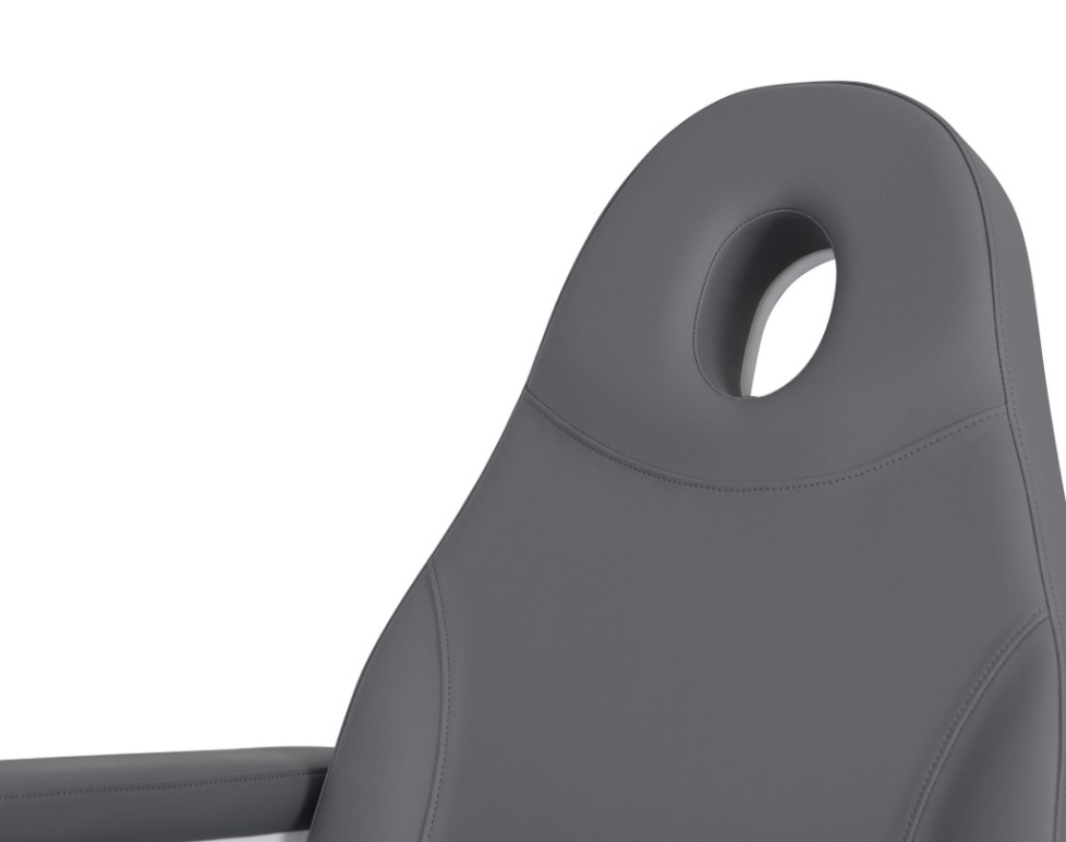 Подвижные подлокотники, подголовник с отверстием для лица.